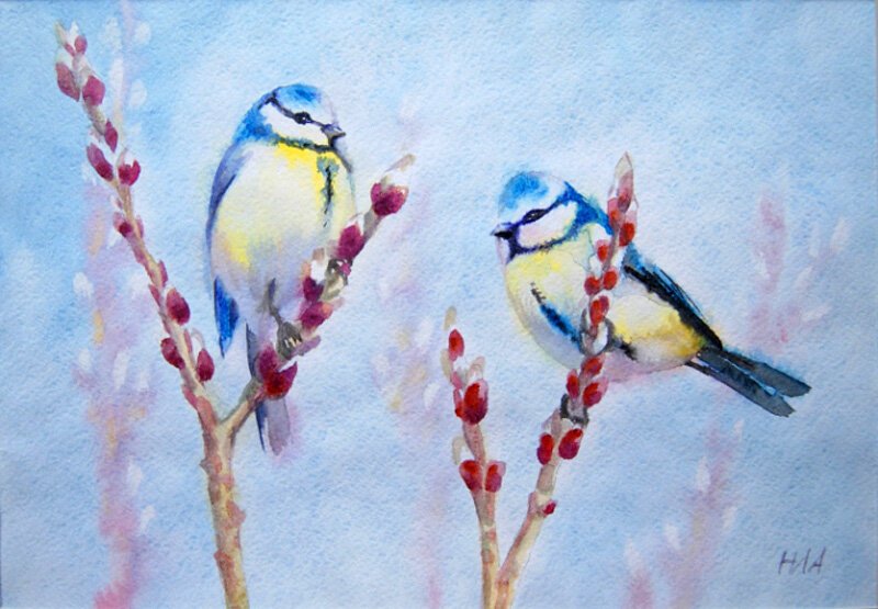 ![Синица лазоревка акварелью]()