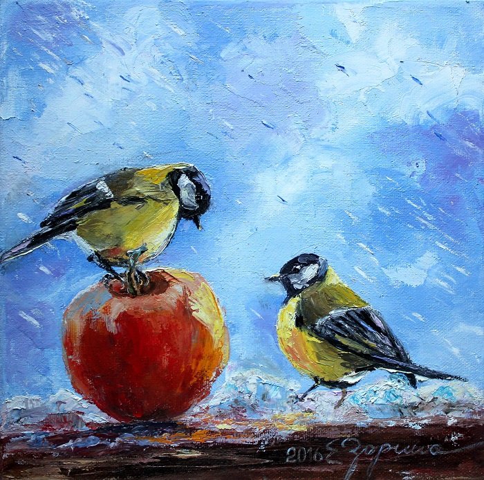 ![Юшина Елена картины с синичкой]()