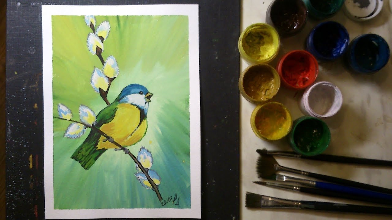 Нарисовать синицу гуашь видео