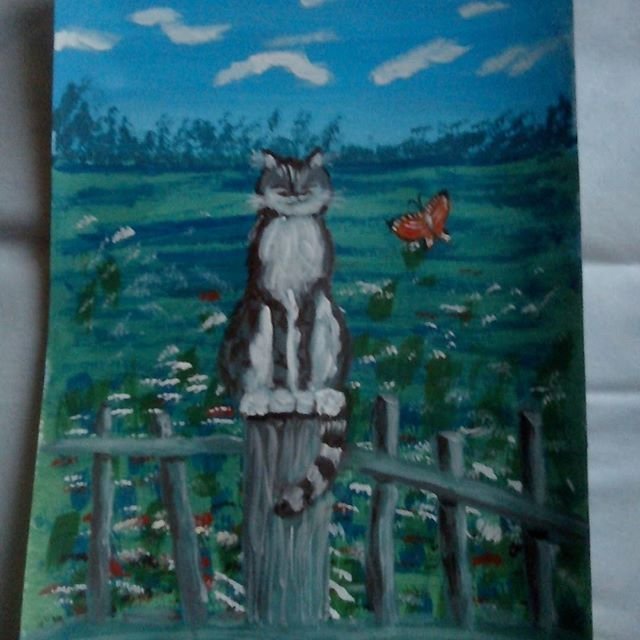 Кот на заборе гуашью