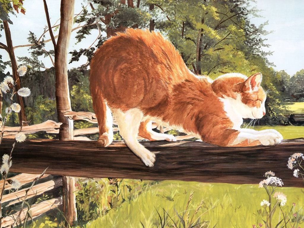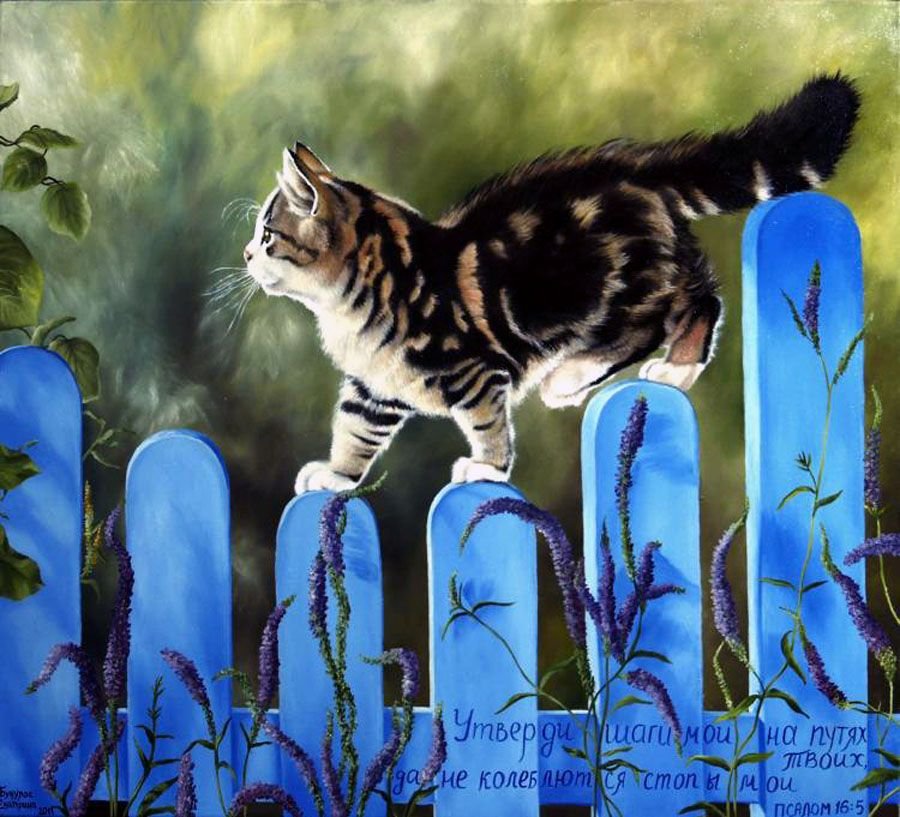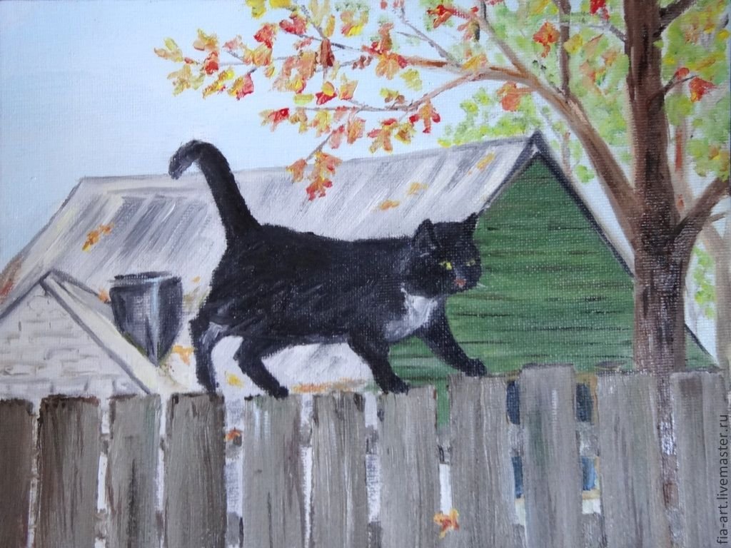 Кошка на заборе живопись