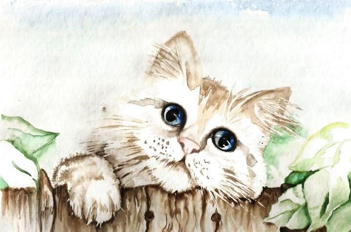 Милые котики акварель