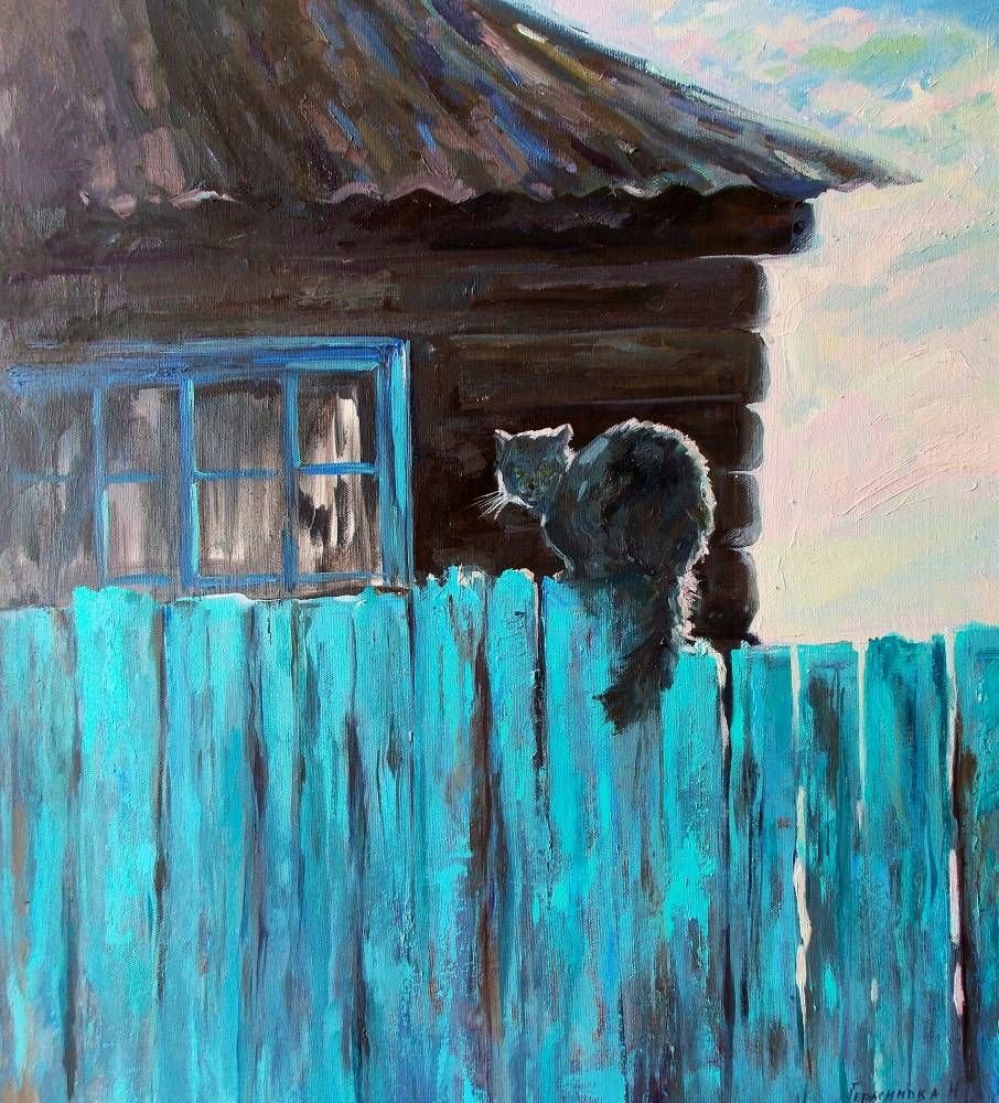 Кот в деревне живопись