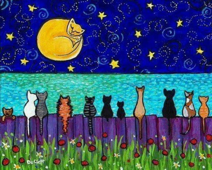 Коты на заборе живопись