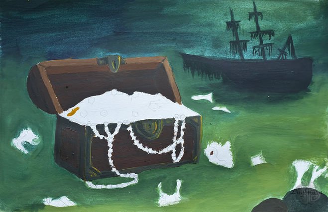 Рисунок сундука с сокровищами, выполненный в технике гуашь, - это настоящая визуальная легенда. В нем запечатлены тайны и приключения, которые ожидают своего открывателя. Яркие цвета и мягкие переходы оттенков создают ощущение глубины и реалистичности изображения. Каждая деталь проработана с особым вниманием, чтобы передать атмосферу загадочности и возбуждения. Этот рисунок позволяет окунуться в мир сокровищ и фантастических приключений, порождая бесконечное воображение и желание исследовать неизведанные области. Он станет прекрасным украшением для любого интерьера, а также отличным подарком для тех, кто мечтает о приключениях и сокровищах.