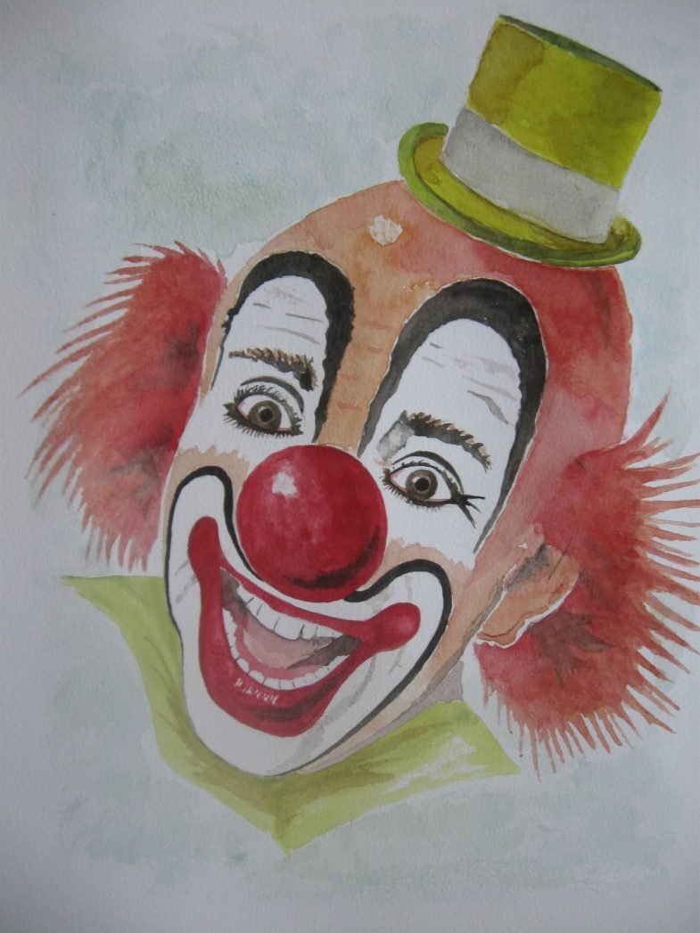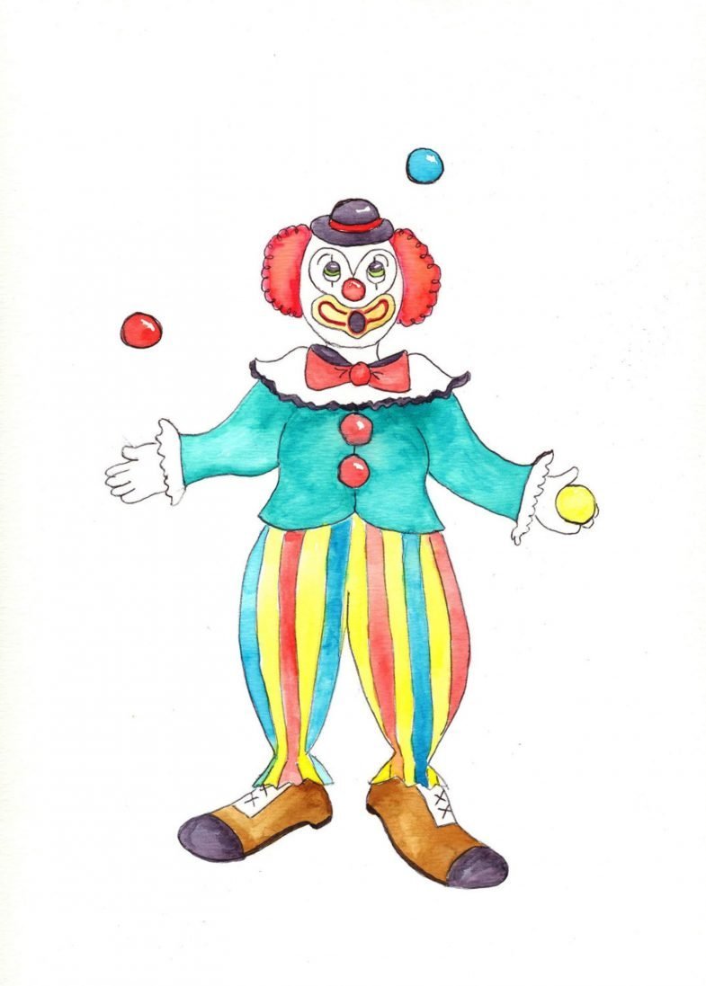 Нарисовать клоуна акварелью