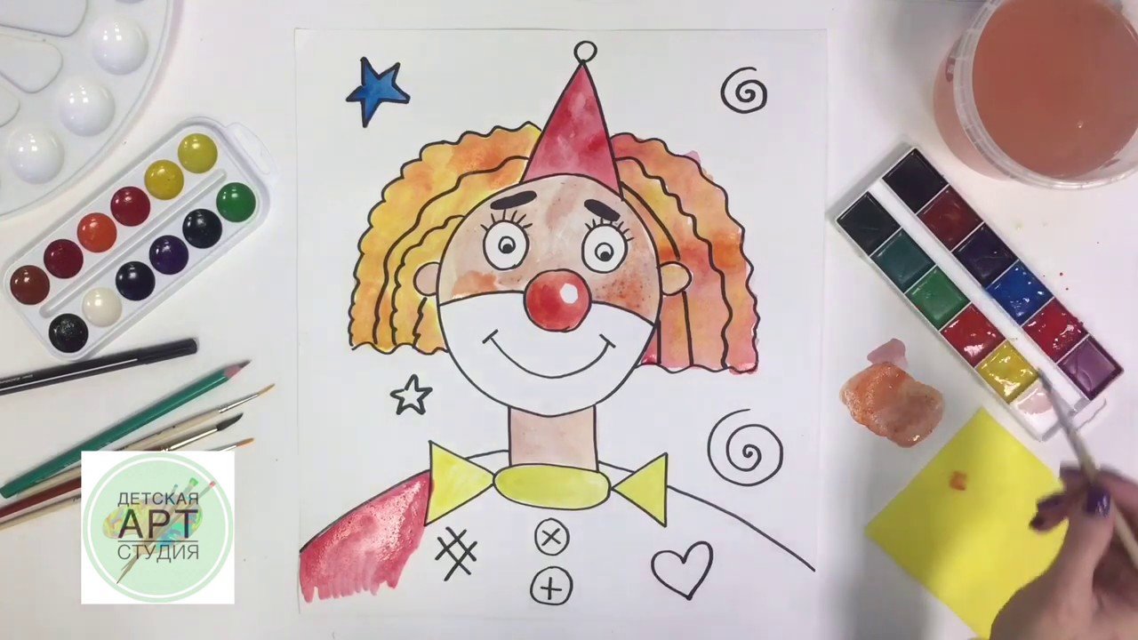 Рисование клоуна детьми красками
