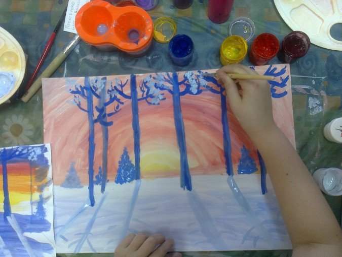 Рисование гуашью в детском саду