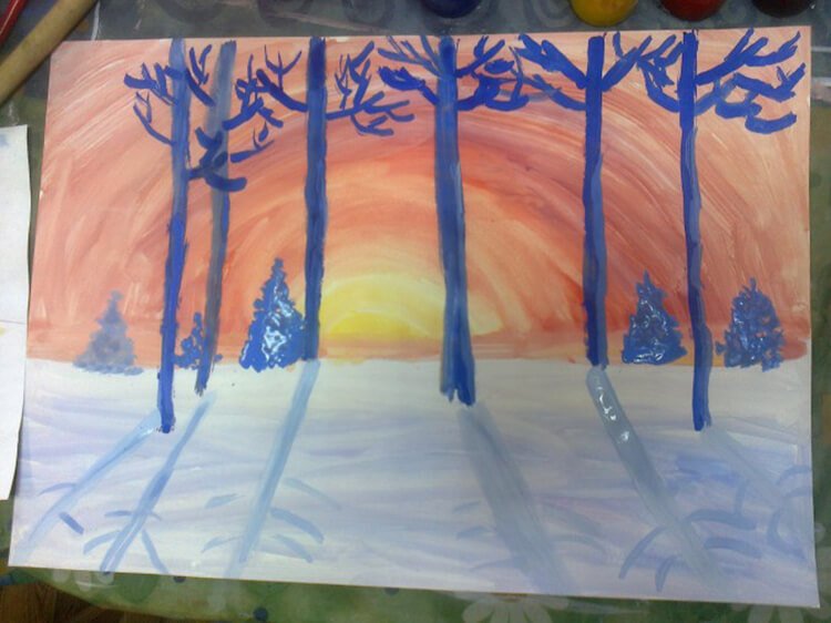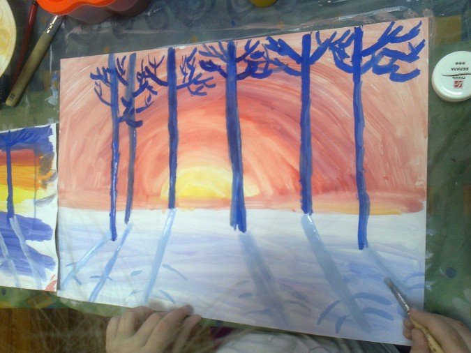 ![Зимний пейзаж рисование в подготовительной группе]()