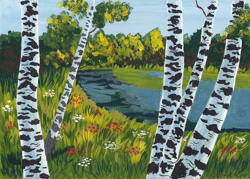 ![Березовая роща гуашь для детей]()