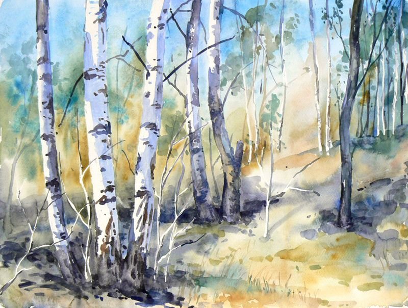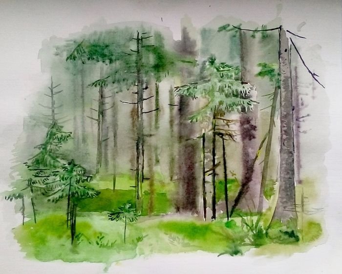 Лес акварелью