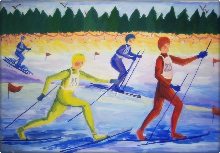 ![Лыжники акварель]()