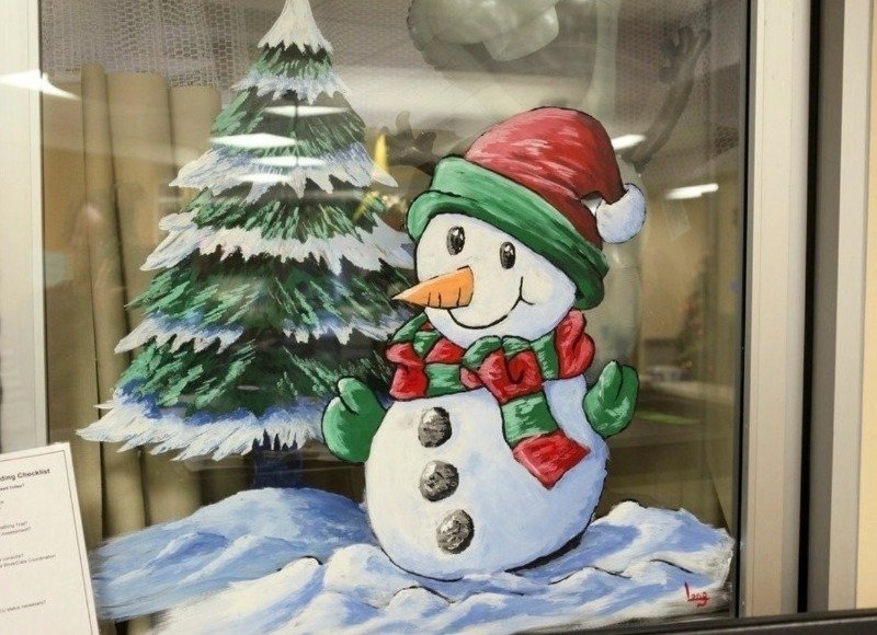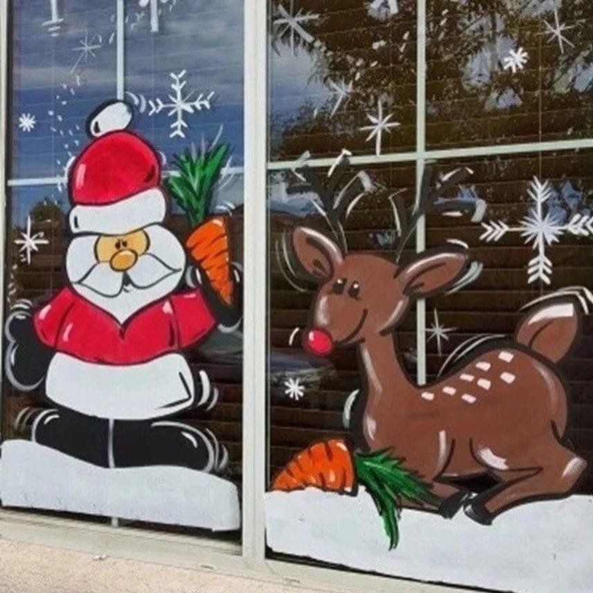 Новогоднее украшение окон красками