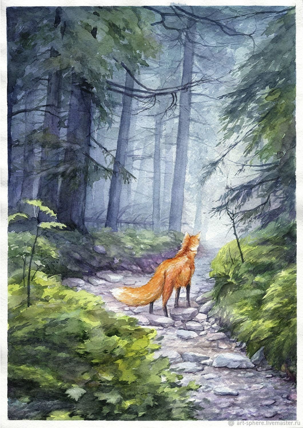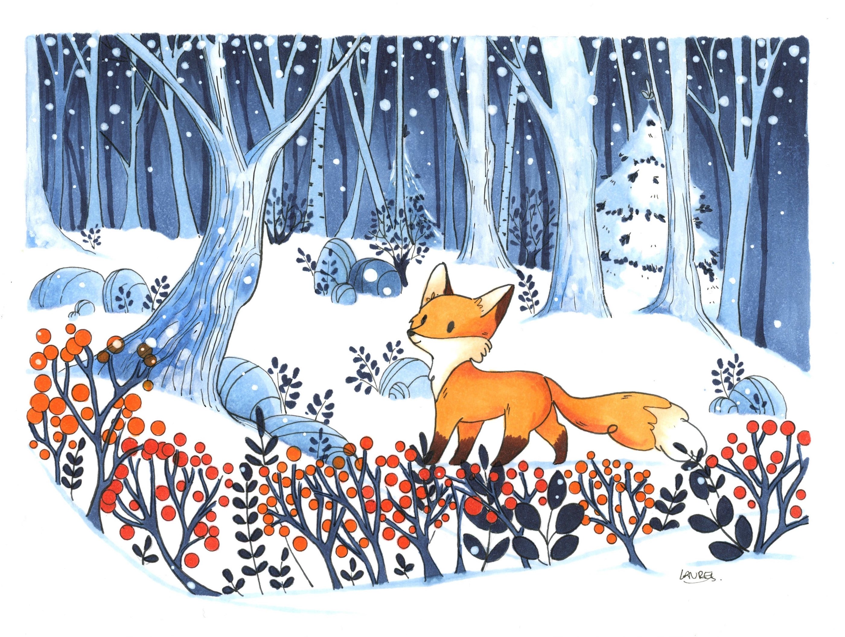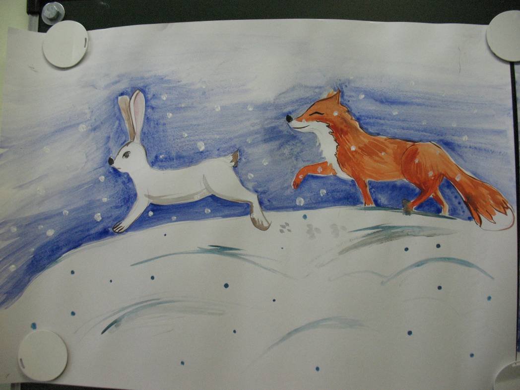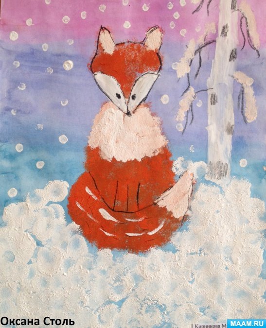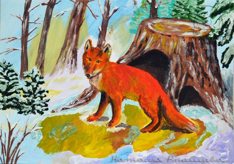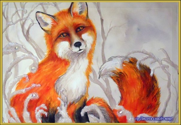 ![Как нарисовать лису по видео и на зимнем пейзаже]()