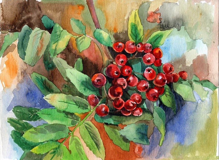 Рябина акварелью