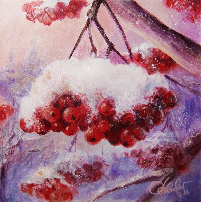 Зимняя рябина в живописи