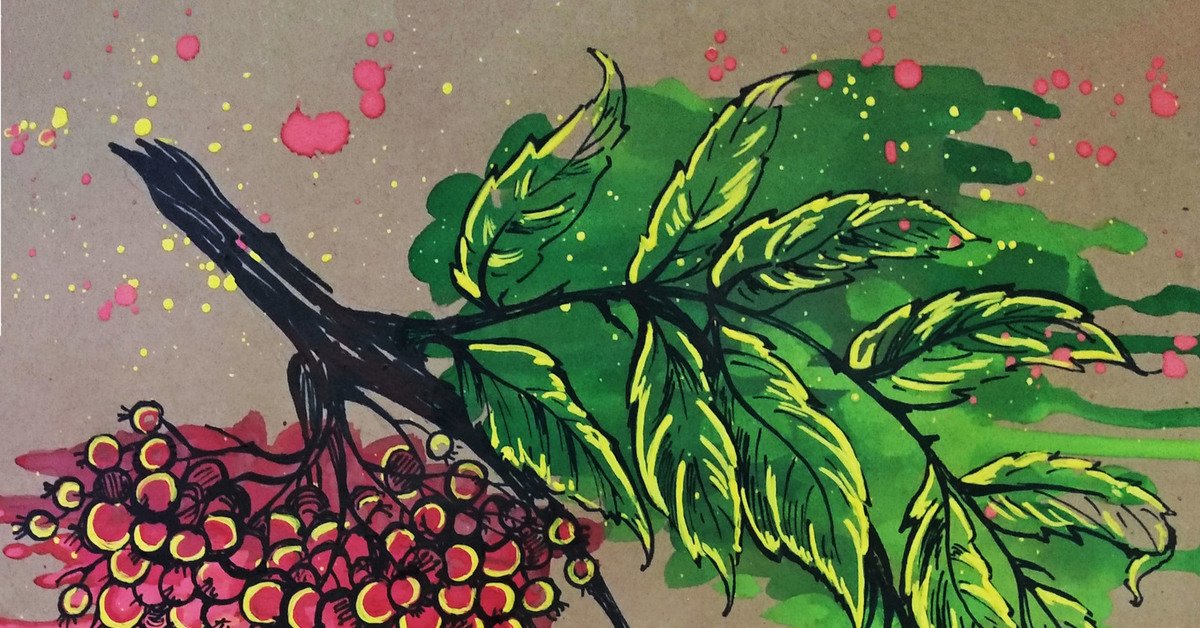 Рябина маркерами