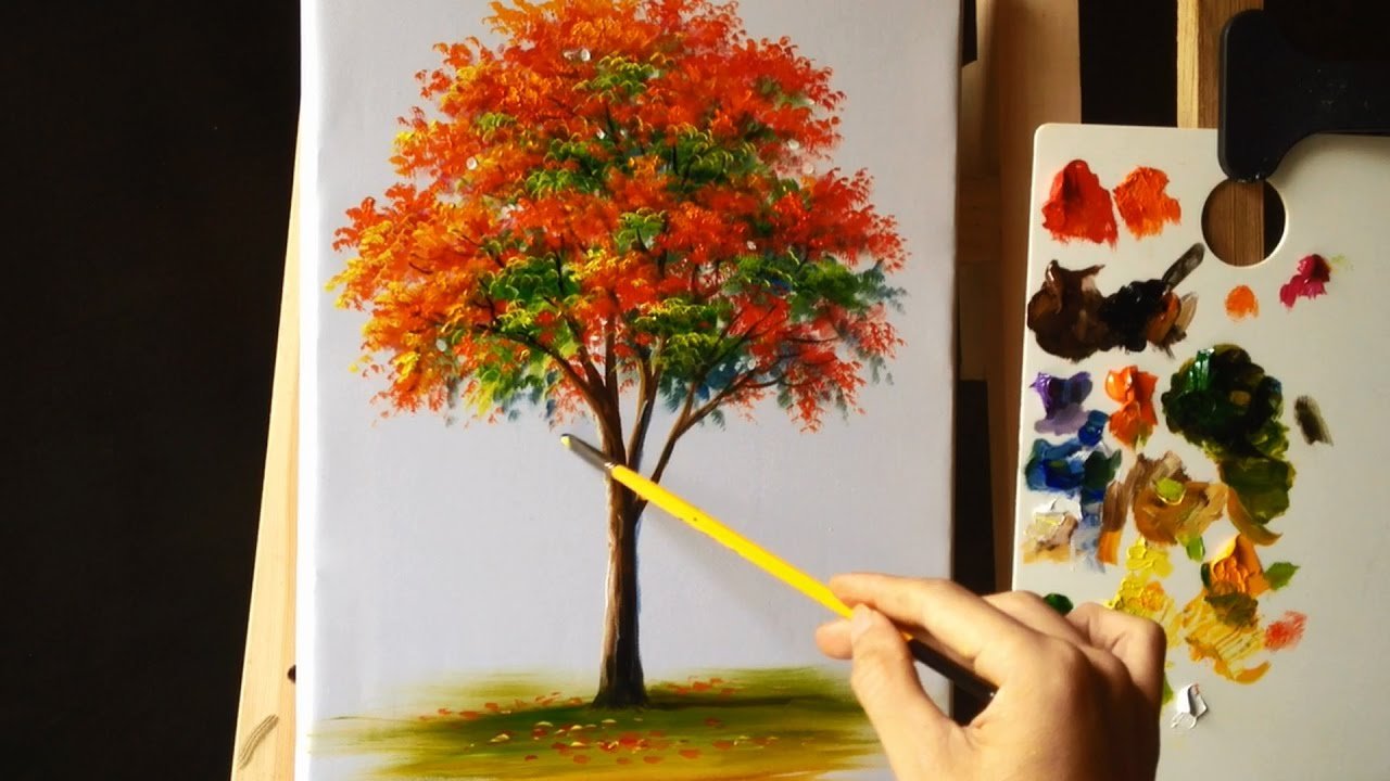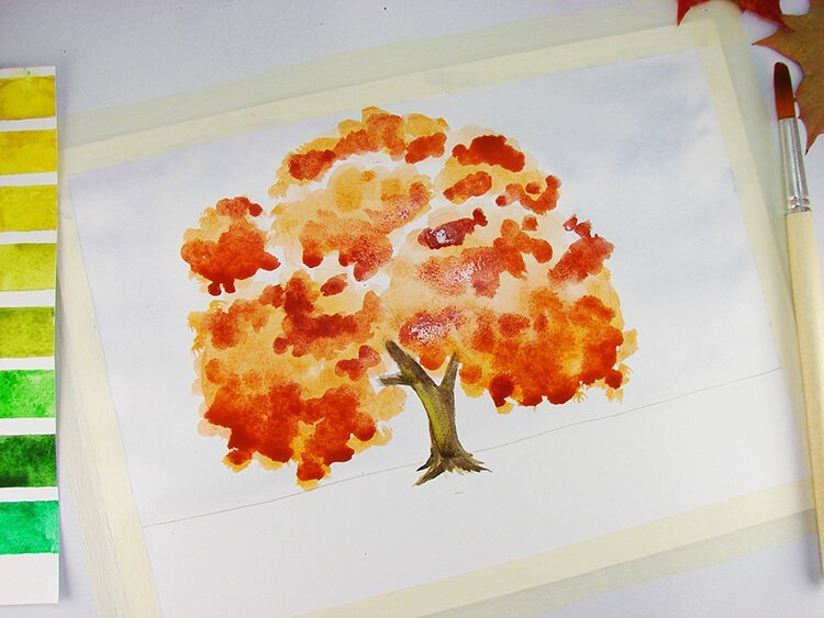 Рисование осеннего дерева акварель