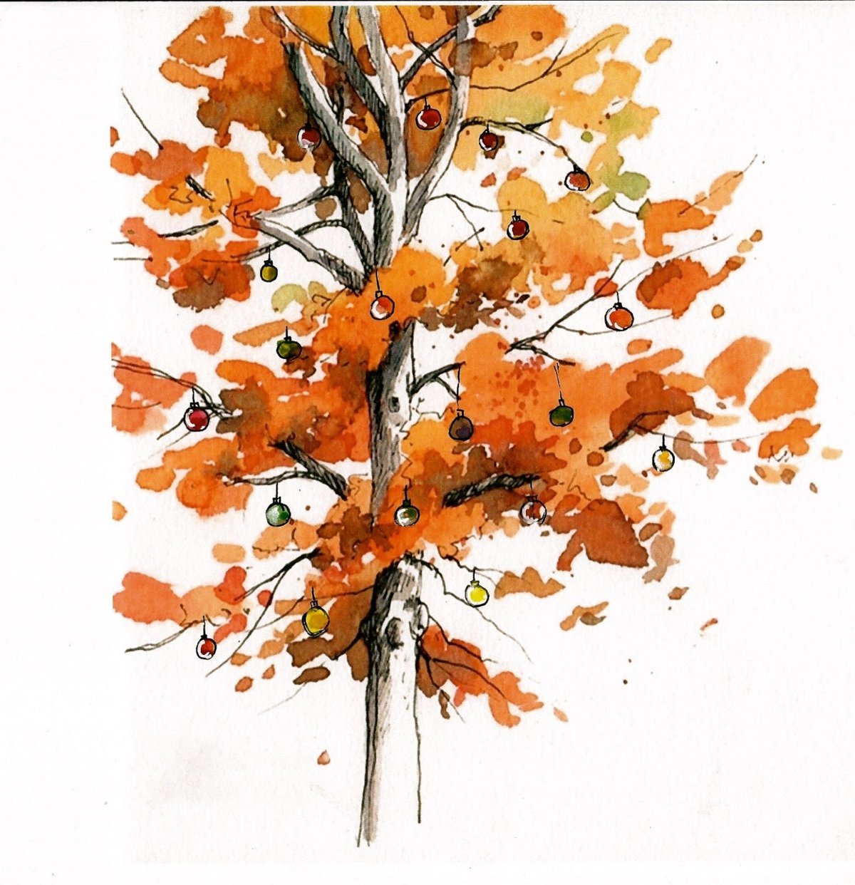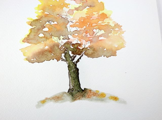 Осеннее дерево акварелью