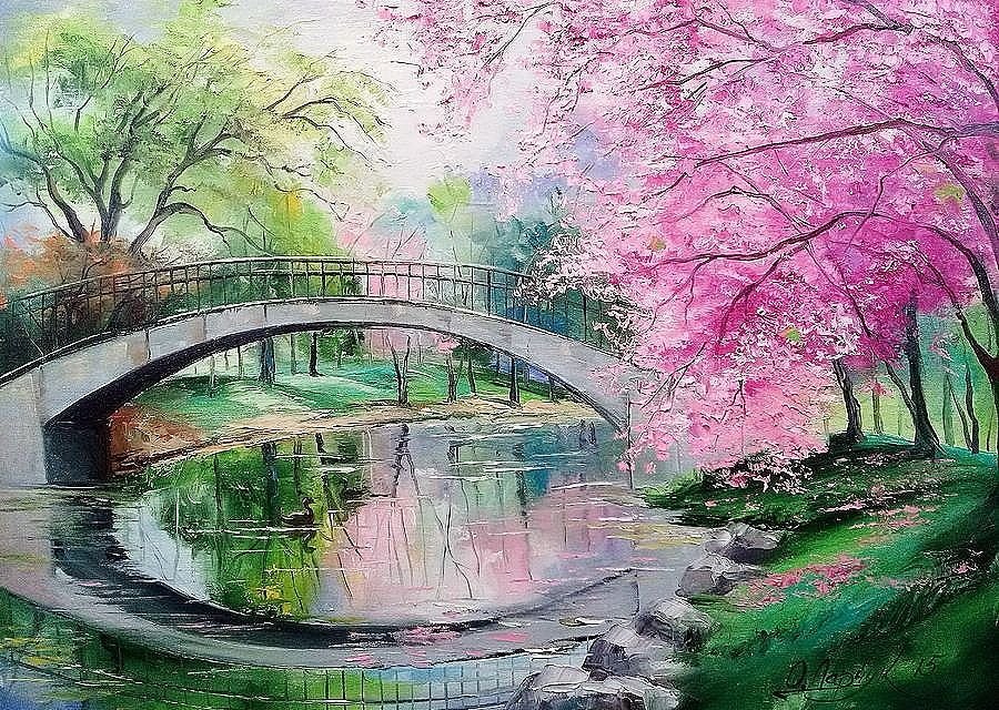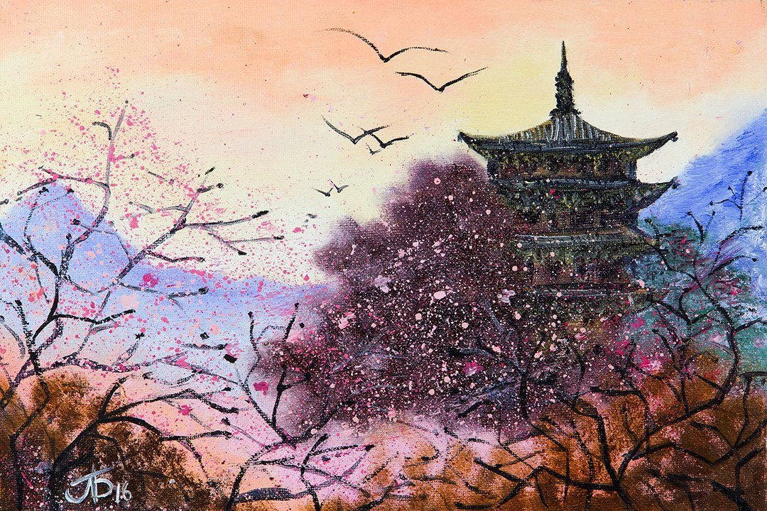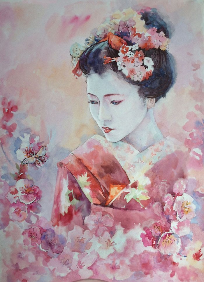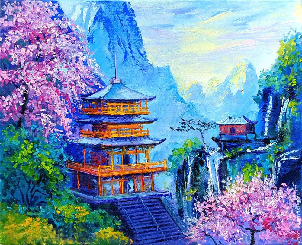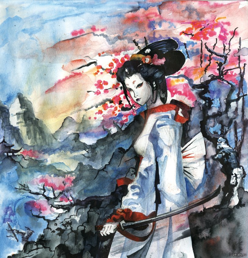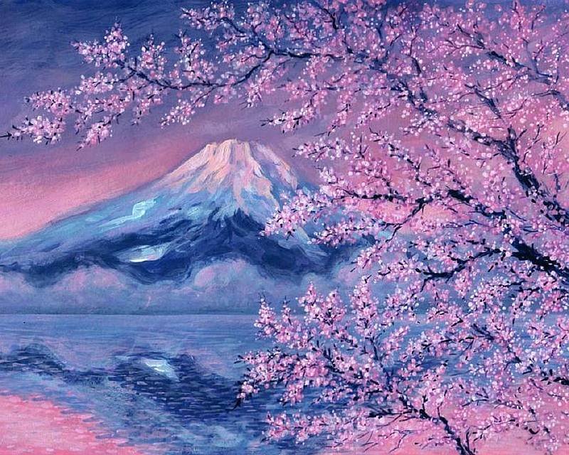 ![Праздник цветения Сакуры в Японии японская живопись]()