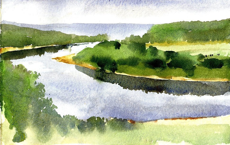 Река Волга акварелью