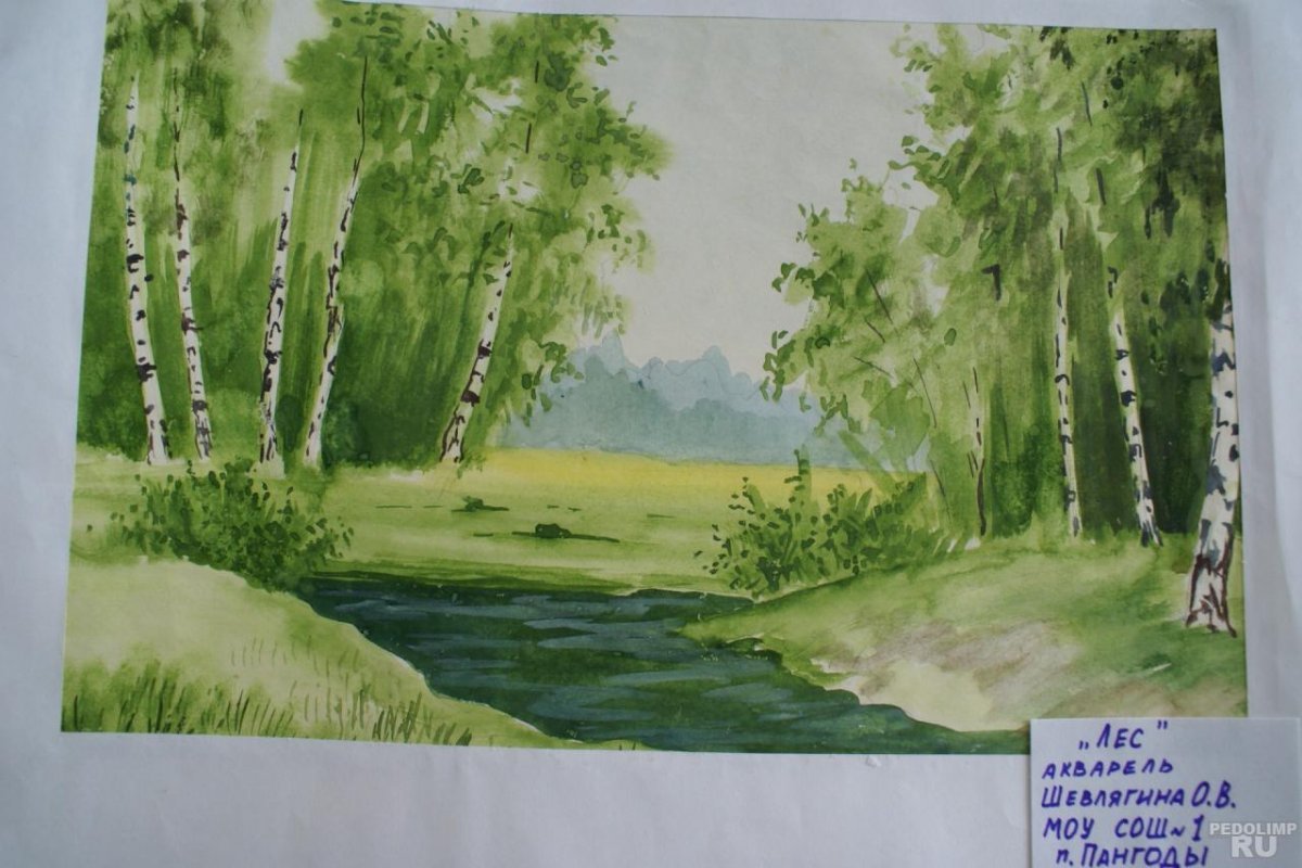![Лесной пейзаж гуашью]()