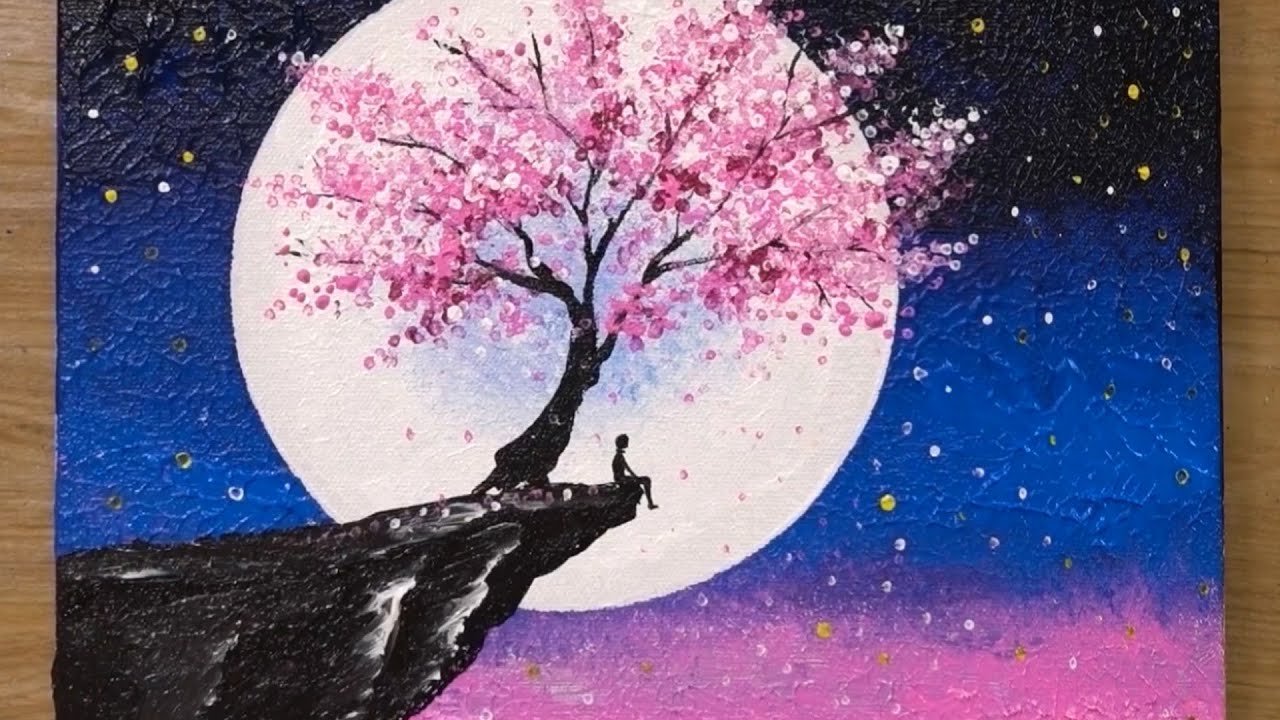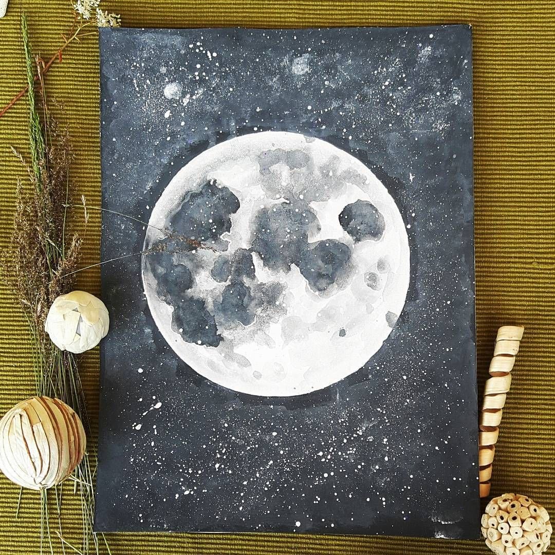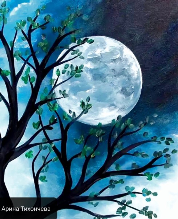 Луна акриловыми красками