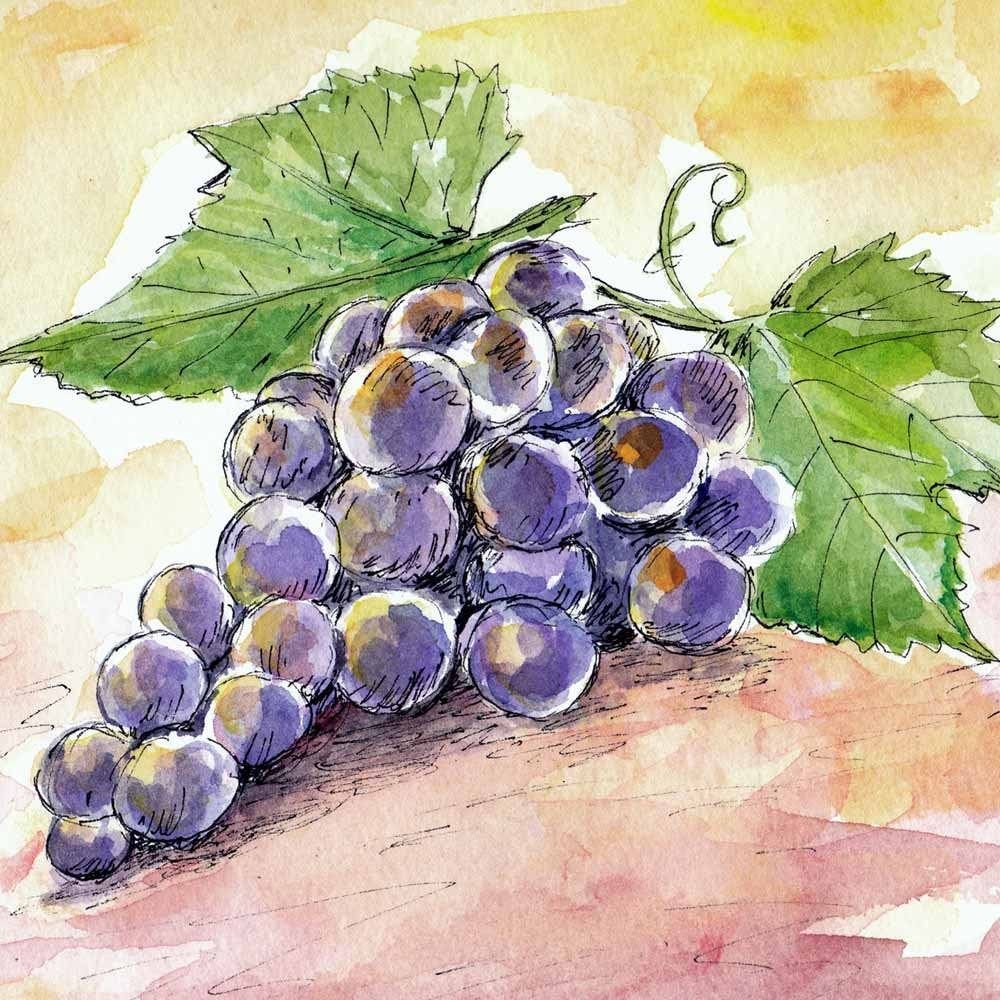 ![Акварельные Наброски виноград]()