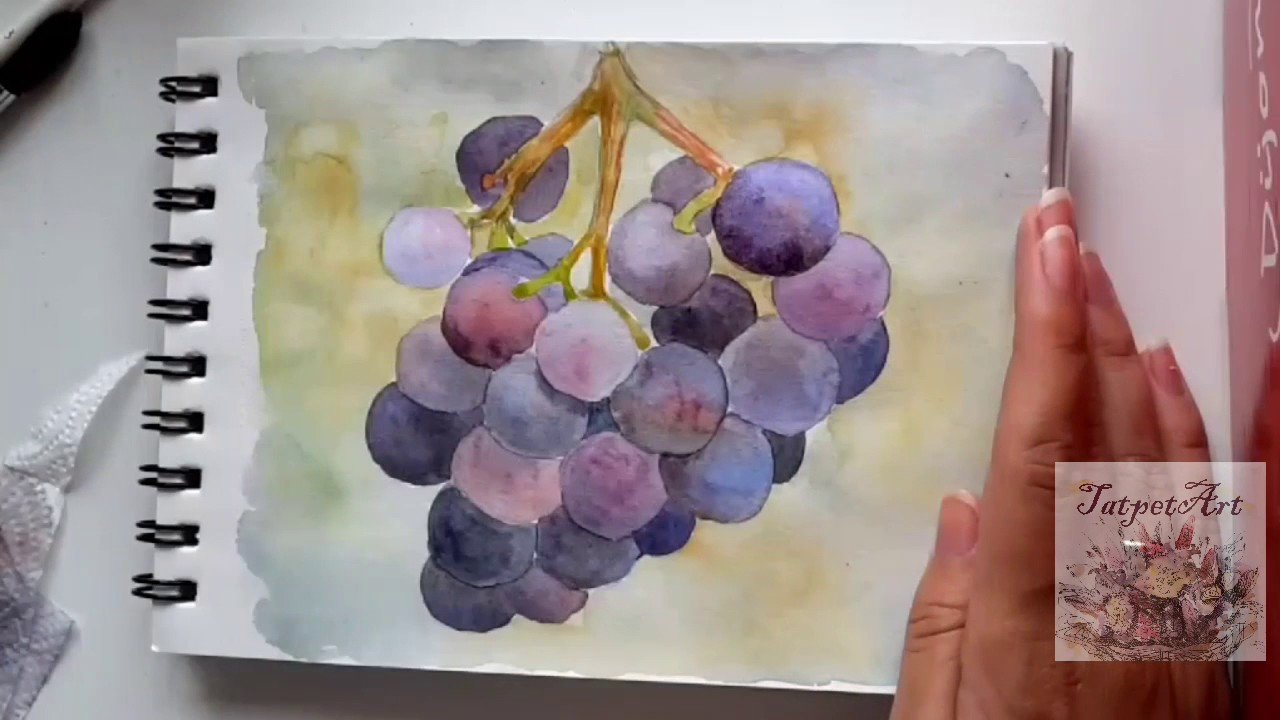![Рисование винограда акварелью для начинающих]()