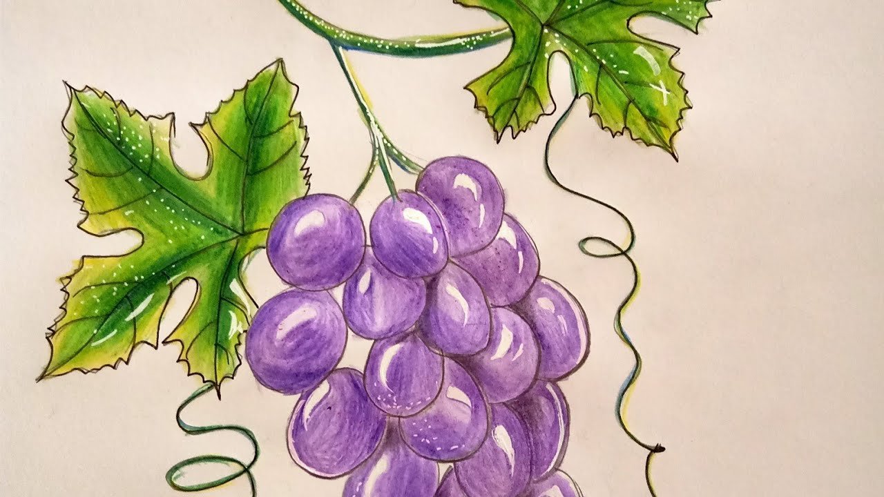 ![Виноград акварельными карандашами]()