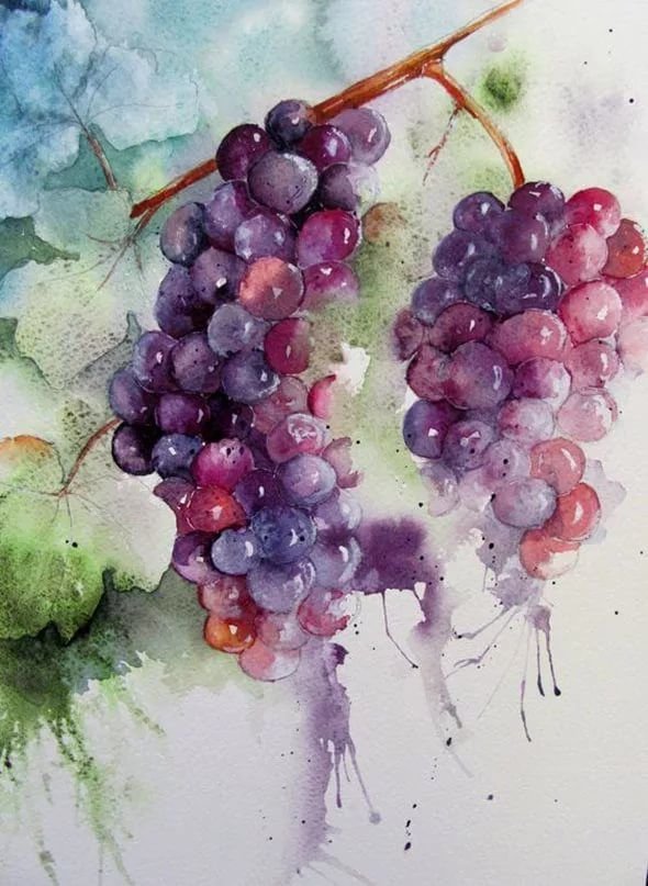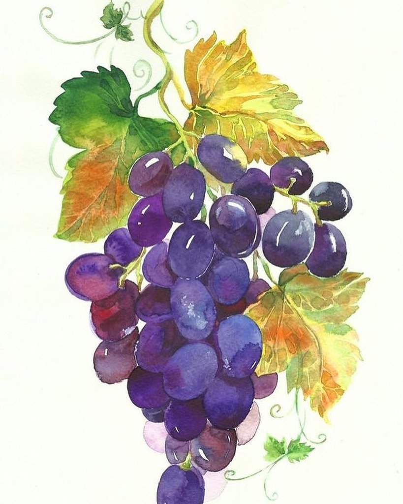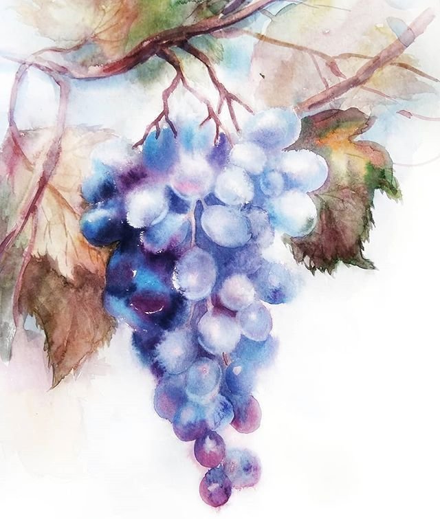 ![Анастасия Беседина акварель гроздь винограда]()
