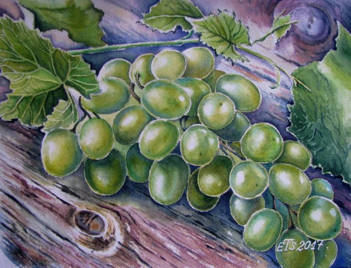 Анастасия Беседина акварель гроздь винограда