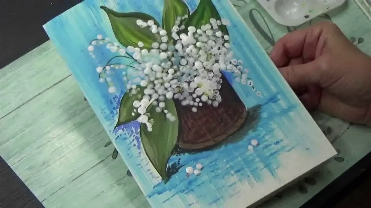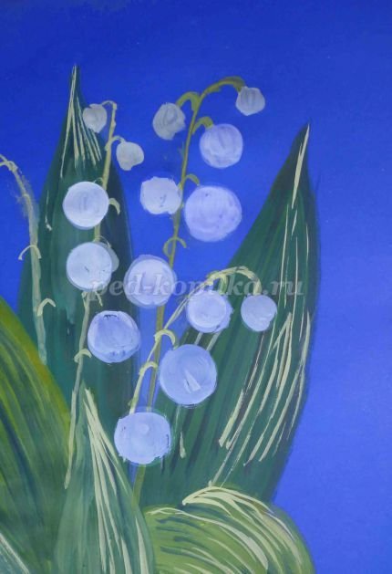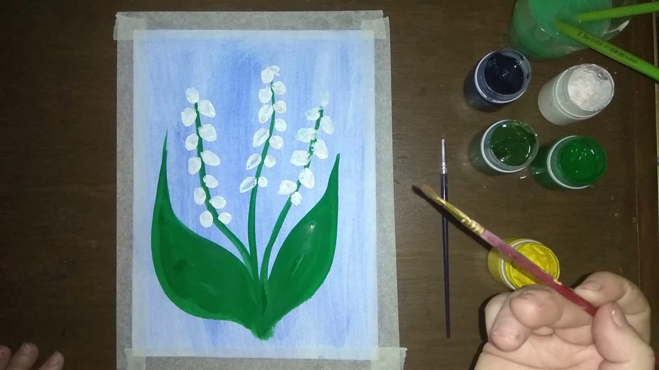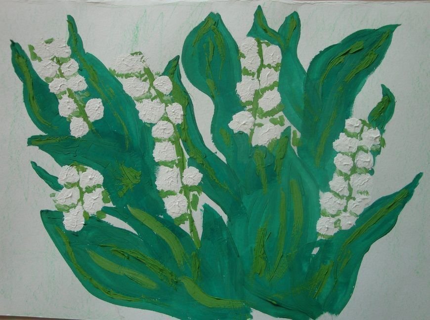 ![Нетрадиционное рисование Ландыши для мамы поэтапно]()