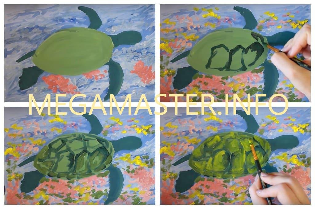 Рисунок гуашью, изображающий черепаху, является прекрасным произведением искусства. Нежные оттенки гуаши создают плавные переходы между цветами и придают рисунку особую глубину. Черепаха, изображенная на этом рисунке, выглядит очень реалистично - ее панцирь имеет детальную текстуру, а контуры тела передают ее грациозность и утонченность. Разнообразные цветовые акценты добавляют интерес и живость к композиции. Этот рисунок гуашью с черепахой будет отлично смотреться в любом интерьере, будь то дом или офис, и станет не только эстетическим украшением, но и напоминанием о природной красоте и важности ее сохранения.