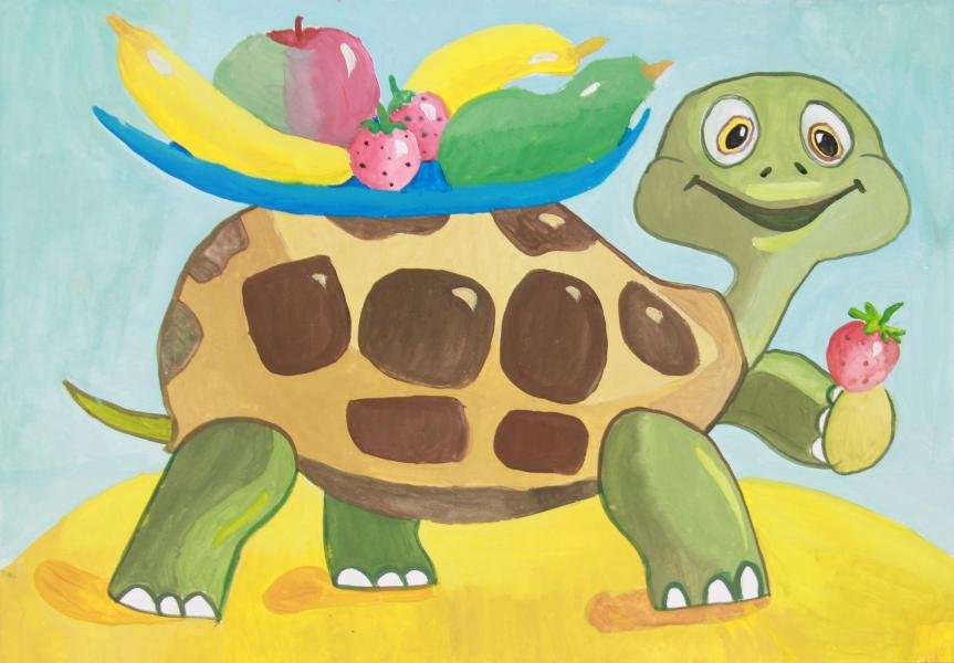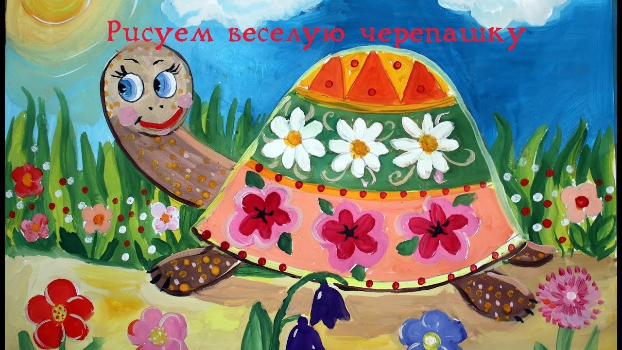 ![Черепаха гуашью детям]()