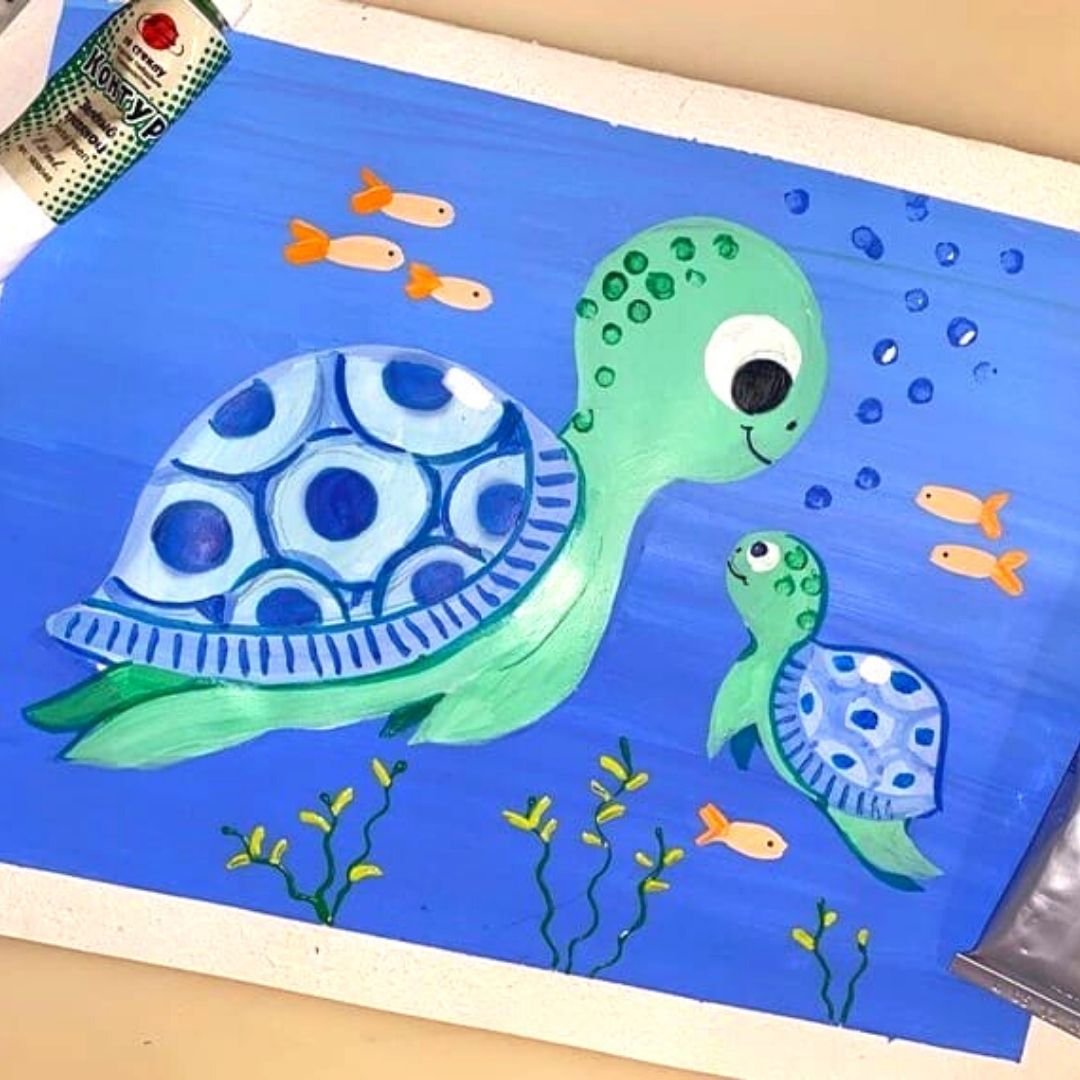 Черепаха гуашью детям