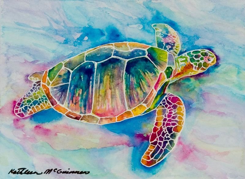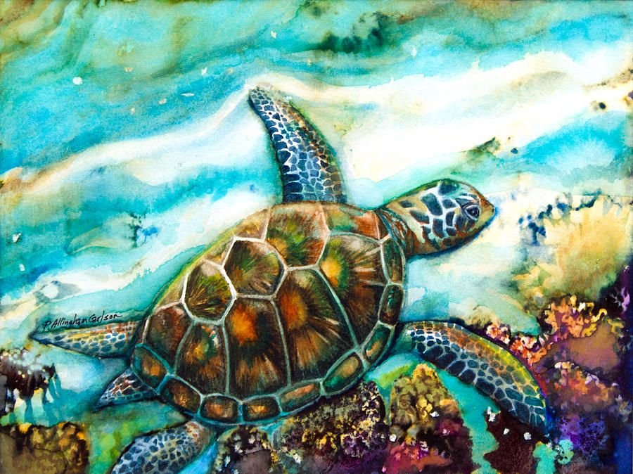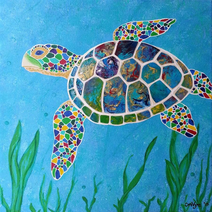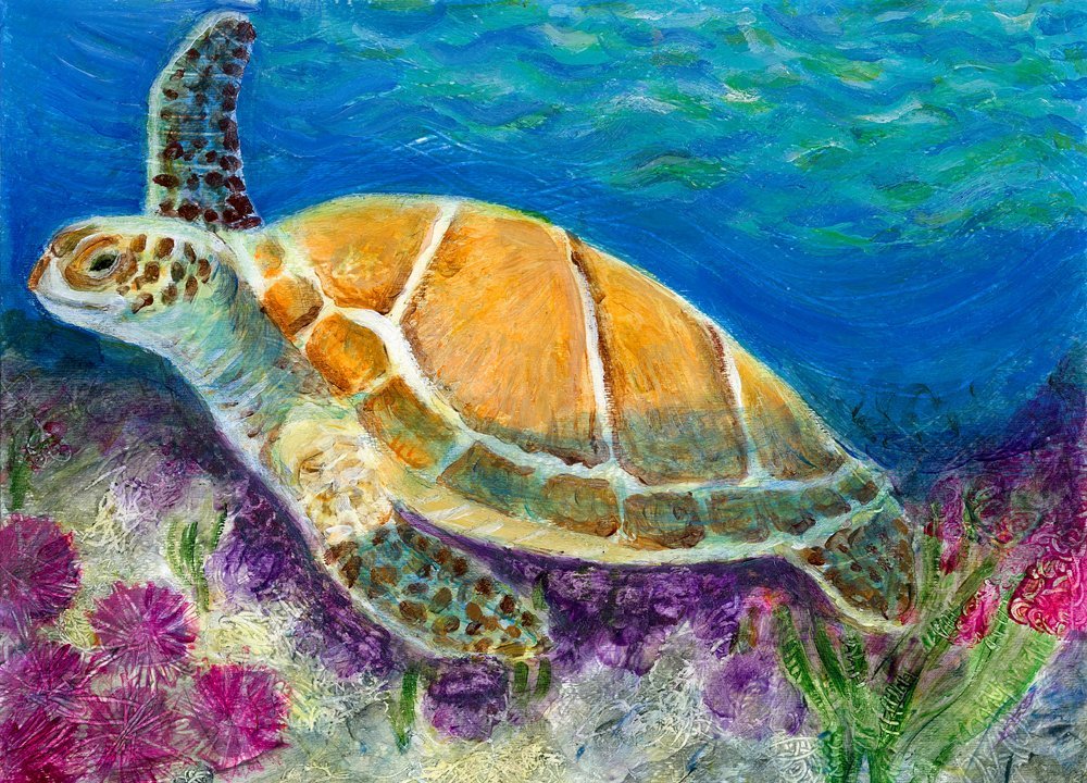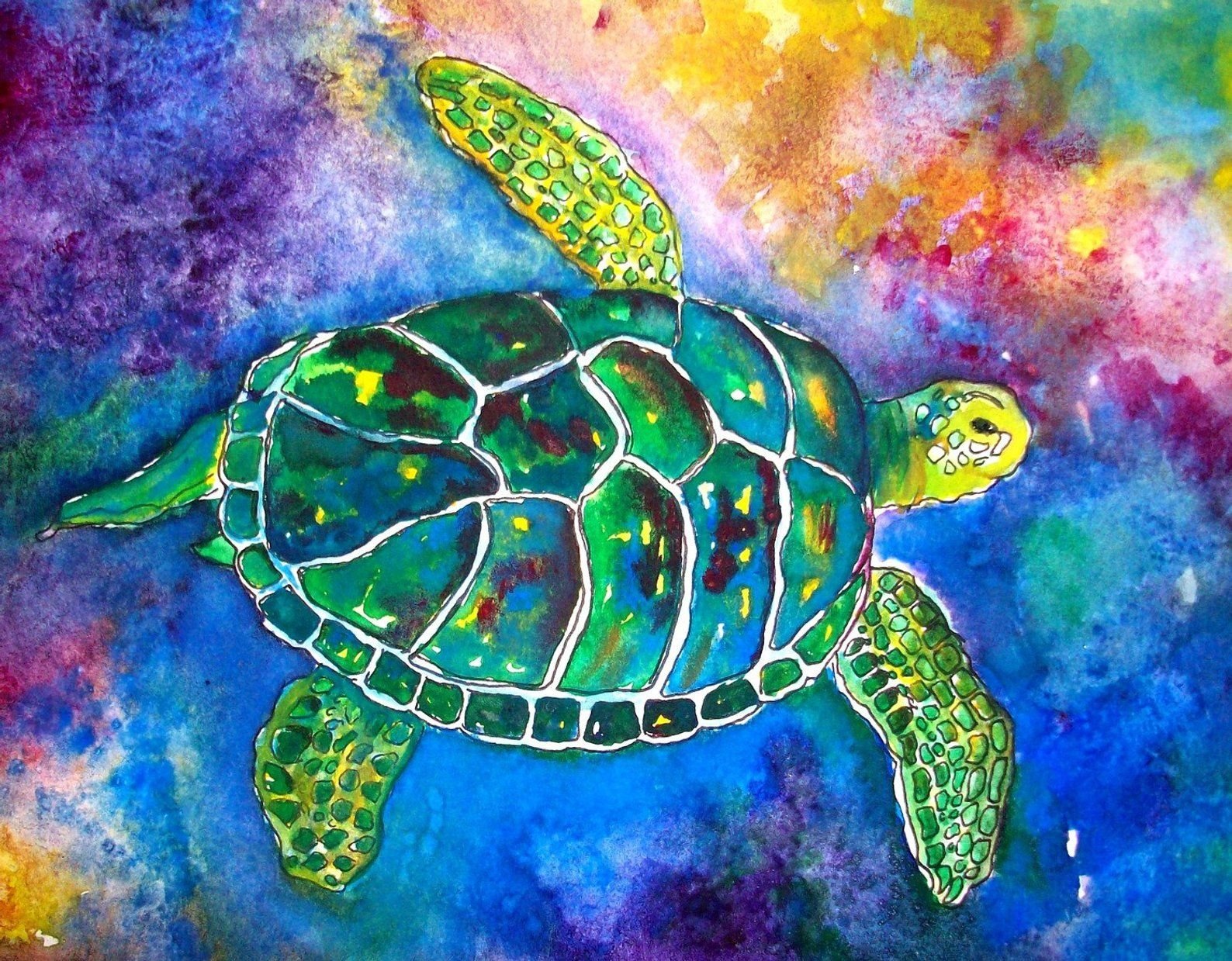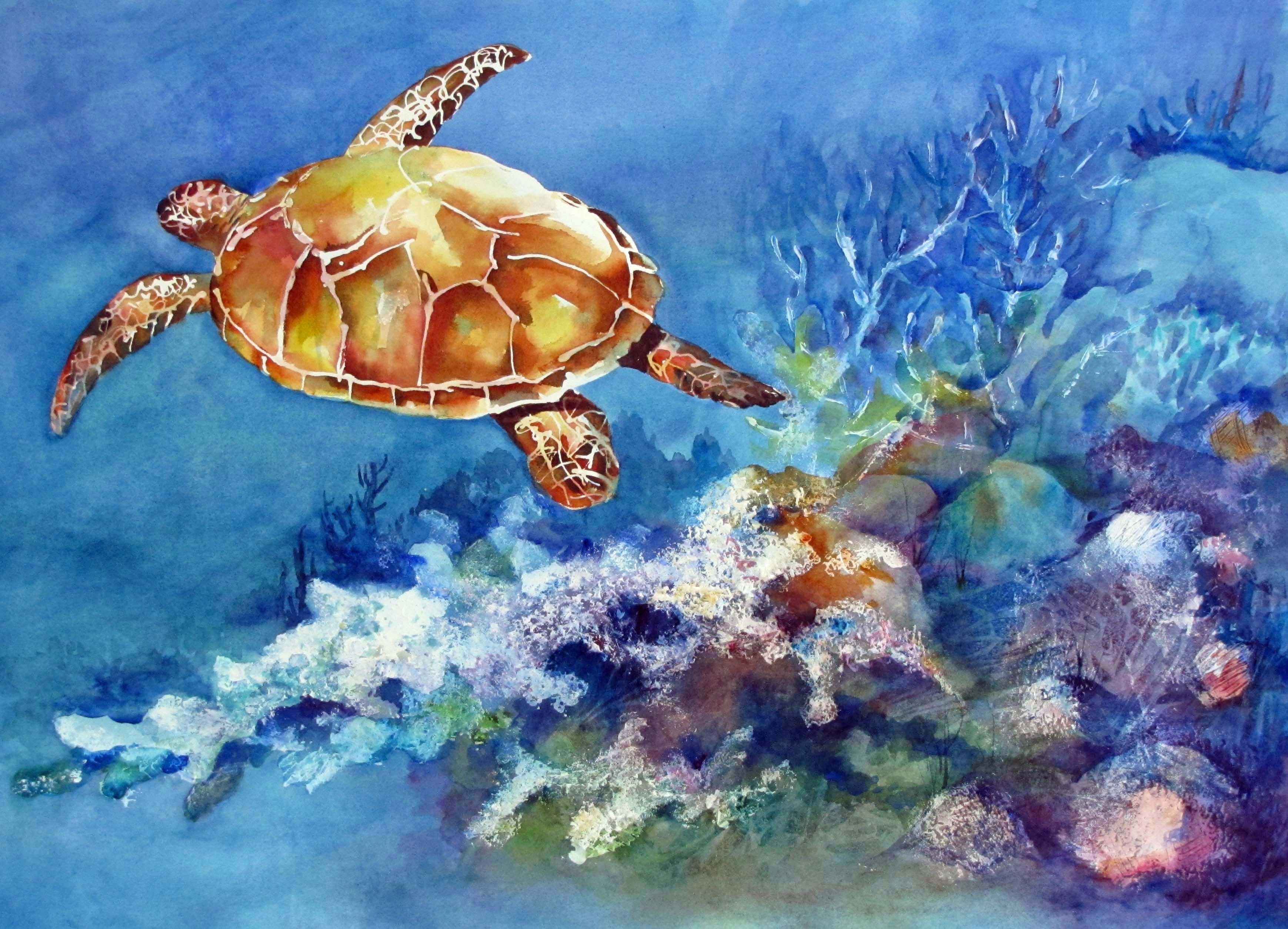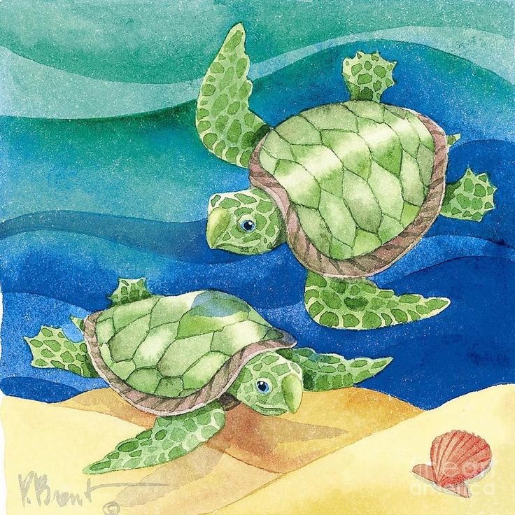 ![Морская черепаха живопись]()