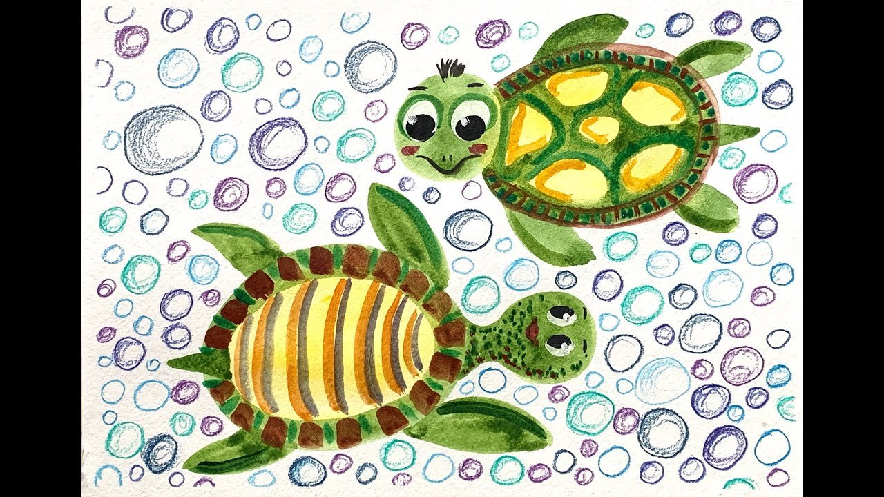 Рисование черепахи восковыми мелками