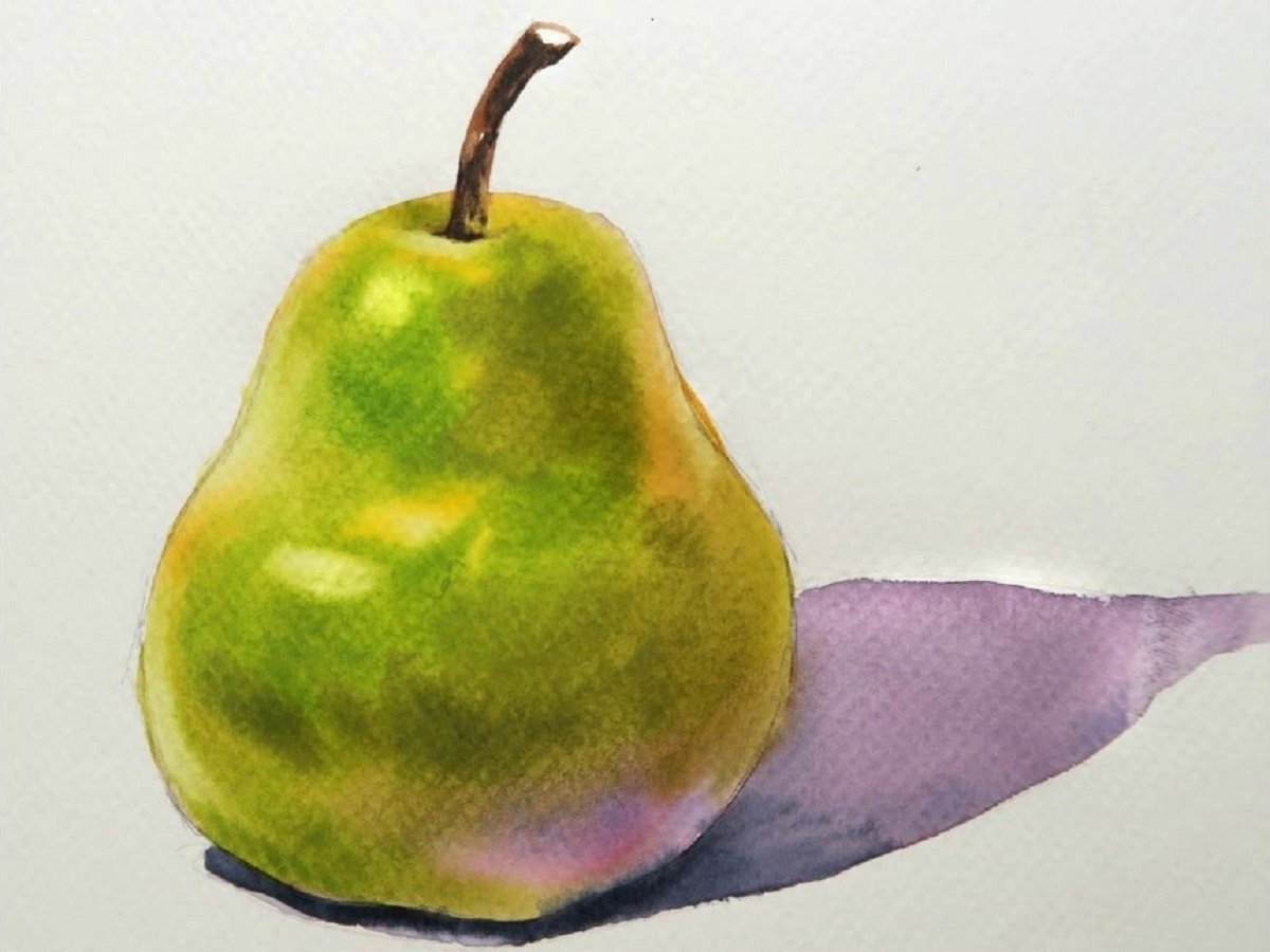 Груша акварелью для начинающих