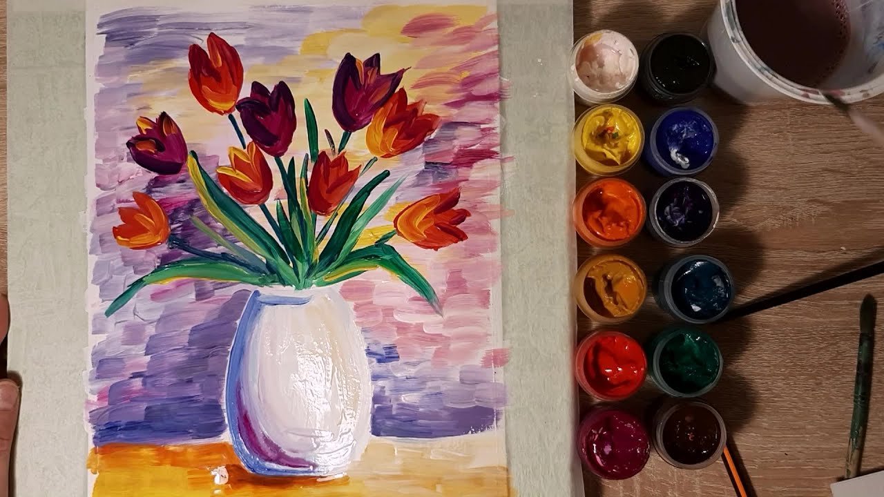 Рисование тюльпаны в вазе