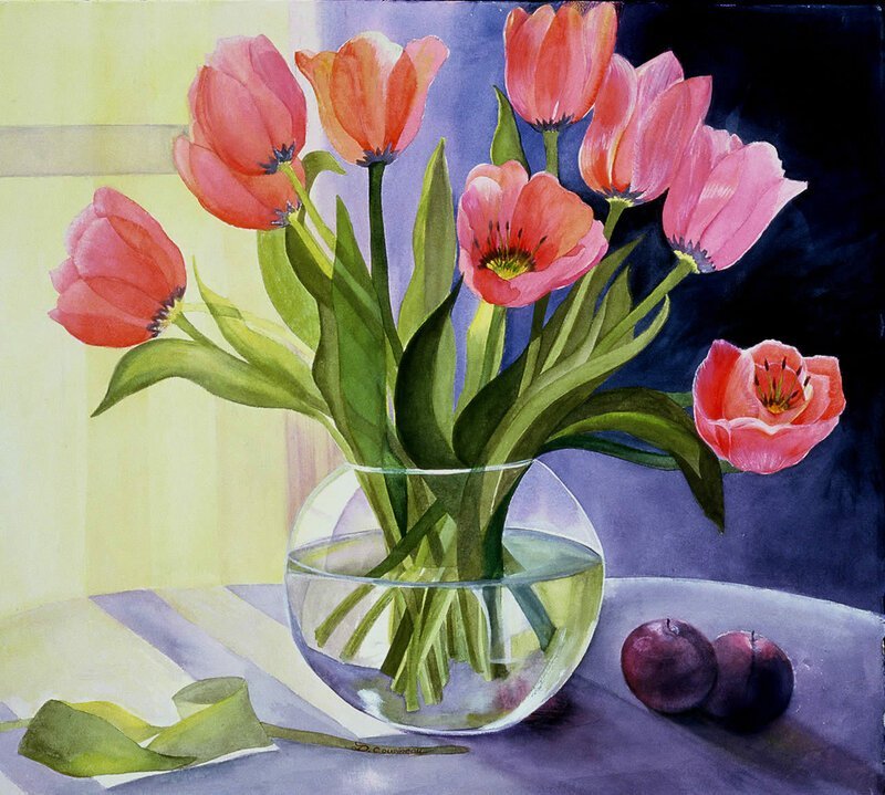 ![Тюльпаны в вазе живопись]()