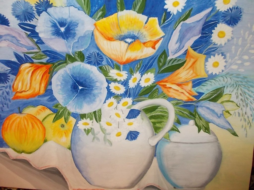 ![Натюрморт ваза с цветами красками]()