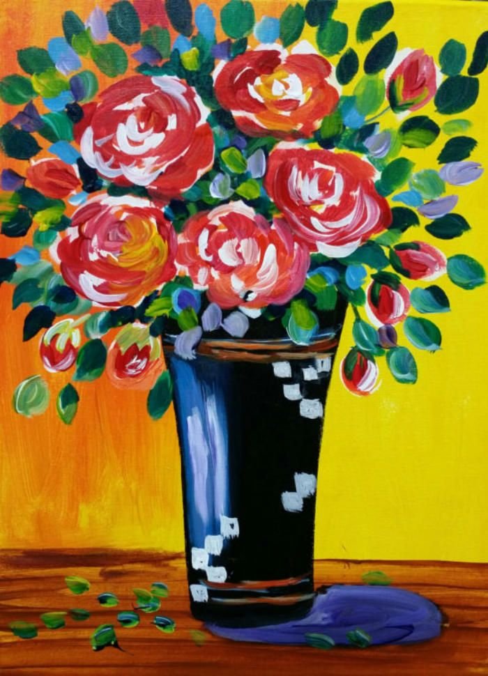 Натюрморт ваза с цветами красками