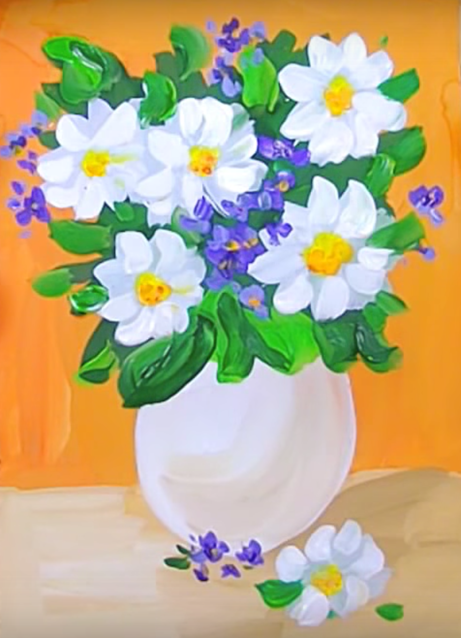 ![Правополушарное рисование для детей цветы в вазе]()