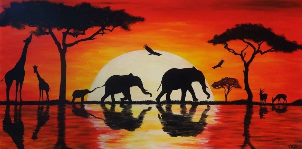 ![Африканские животные живопись]()