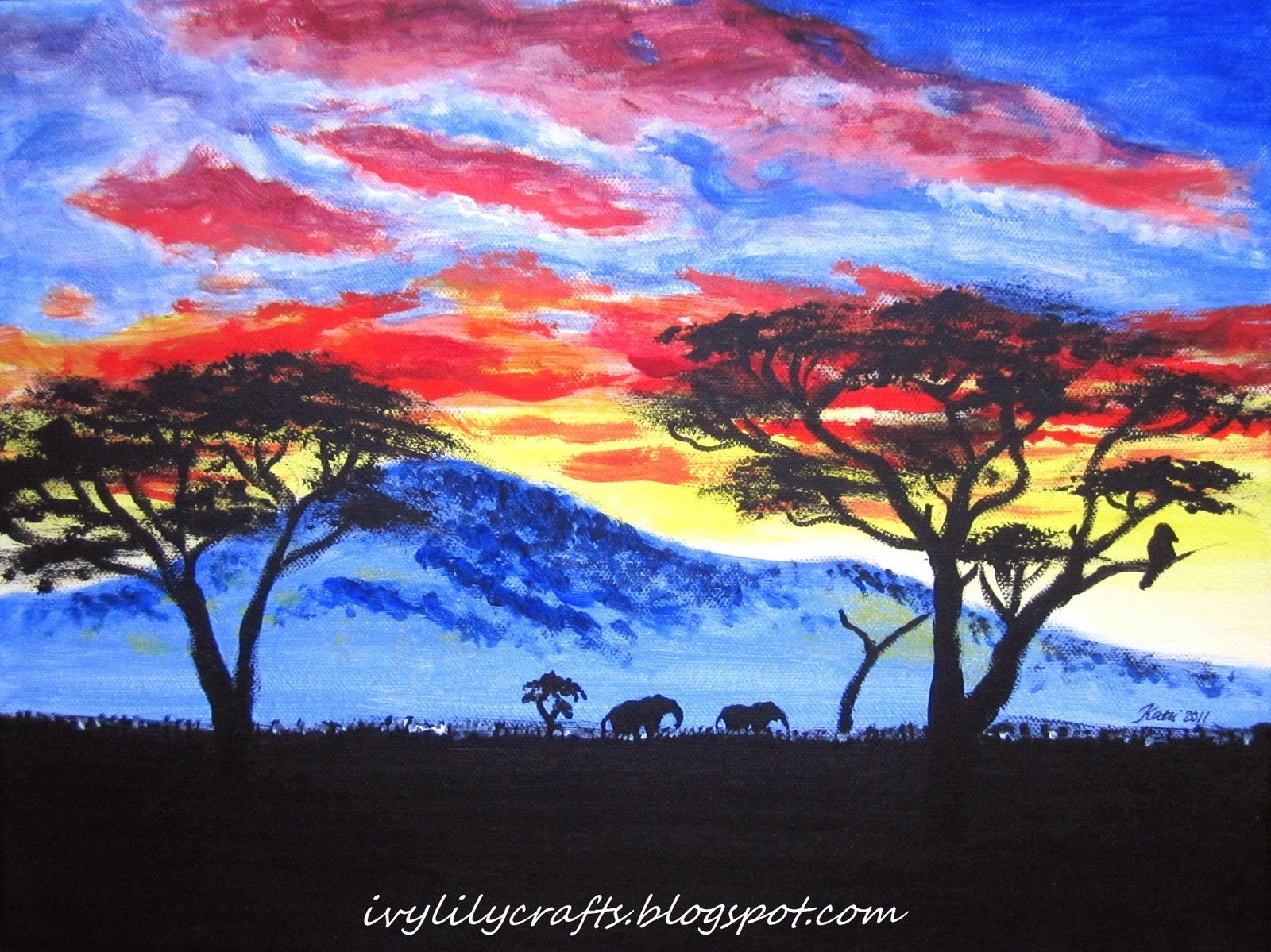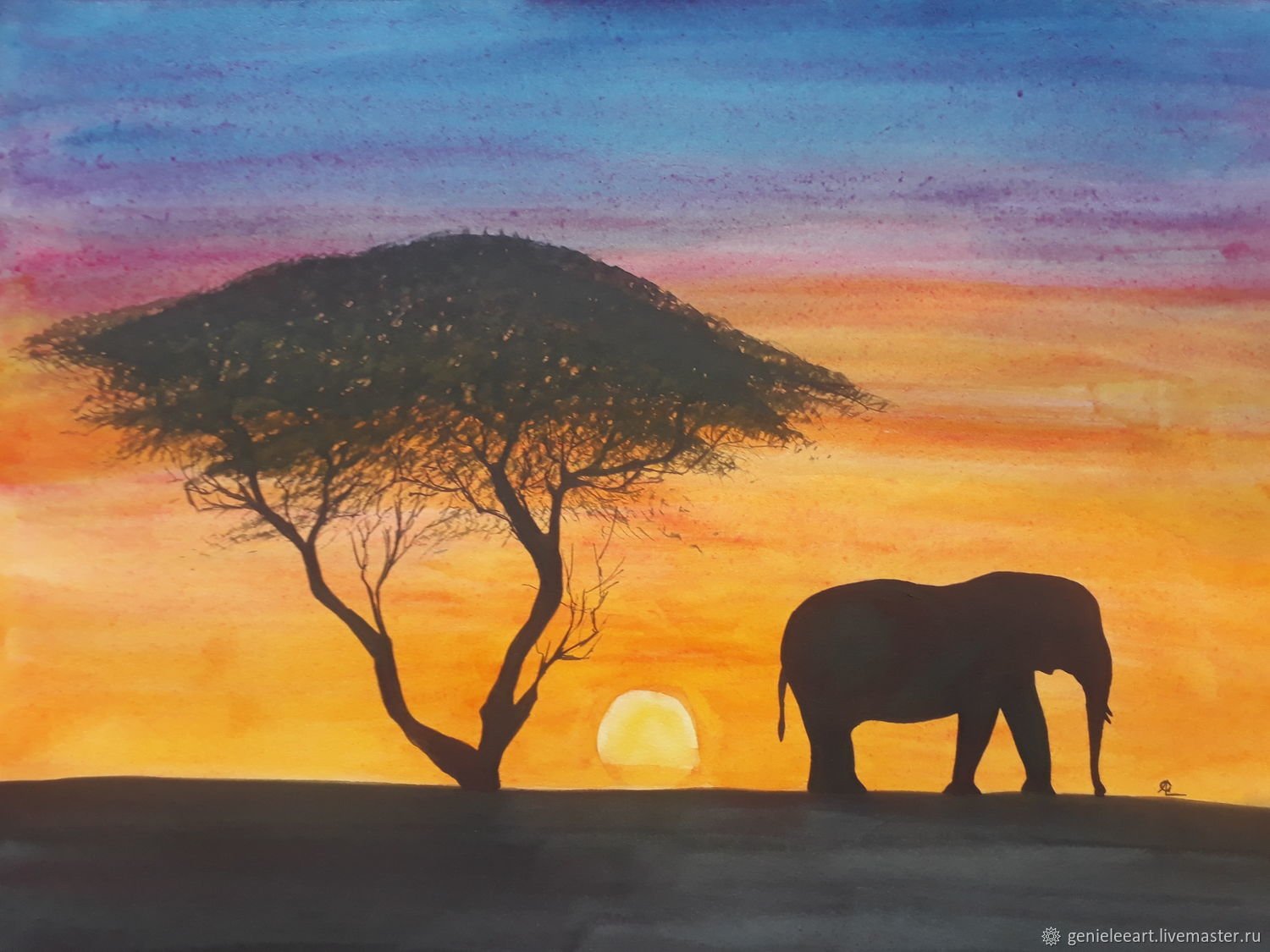 ![Пейзаж гуашью Африка]()