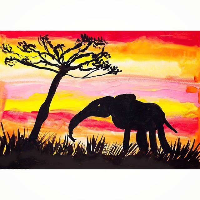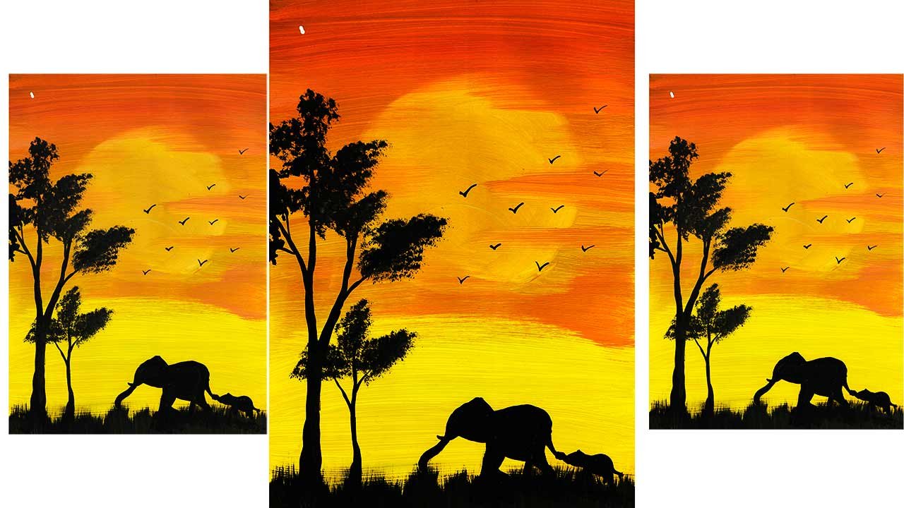 ![Картина слоны на закате]()