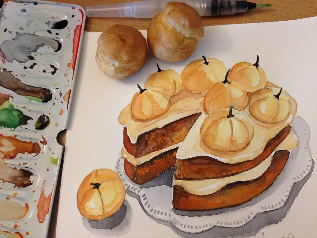 ![Скетчинг акварелью торт]()