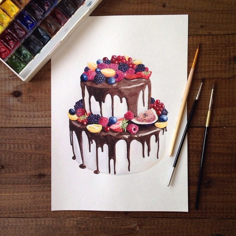 Торт рисунок гуашью