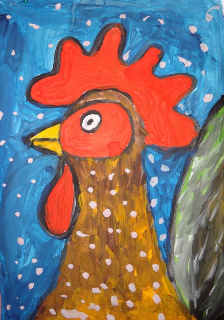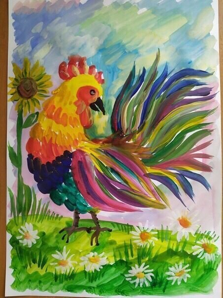 ![Петух гуашь с детьми]()